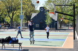 St. Mary's Park is the largest park in the heart of the south Bronx. The renovation of this 2.5-acre playground on the northwest edge of the larger 35-acre park expands active recreation within the project limits while providing new and enhanced programming. Features include a large play area for children ages 2-5 and 5-12, an enhanced spray shower area, reconstructed basketball and tennis courts, a new adult fitness area, relocated sports lighting, preservation of large existing trees, and new seating areas.